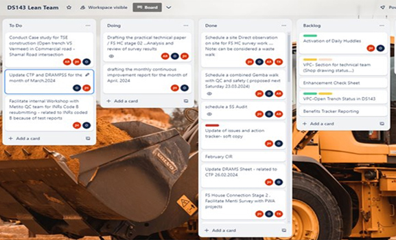 This fosters clarity and accountability across project phases, from planning and scheduling to execution and monitoring. Trello enhances collaboration by enabling real-time updates, facilitating efficient resource allocation, and promoting agile problem-solving, ultimately improving project transparency and delivery efficiency in construction operations.