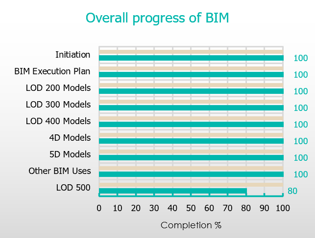 Schematic design options were prepared in Revit with detailed architectural and performance analysis to evaluate various options. Live walkthrough with Lumion for client presentations gave client clear picture and better understanding of design. Clash detections with Navisworks to collaborate through multidisciplinary teams, use of BIM360 to collaborate between designer’s abroad teams were some of the tools used to expedite the process of developing higher level of LOD. The handover of models and data drops at each stage has ensured that model maturity continues its development from design to construction. Started with LOD100 for schematic design and now reached LOD400 for shop drawings, the final goal is to develop a viable Asset Information Model (AIM) for the use in the building operations lifecycle.